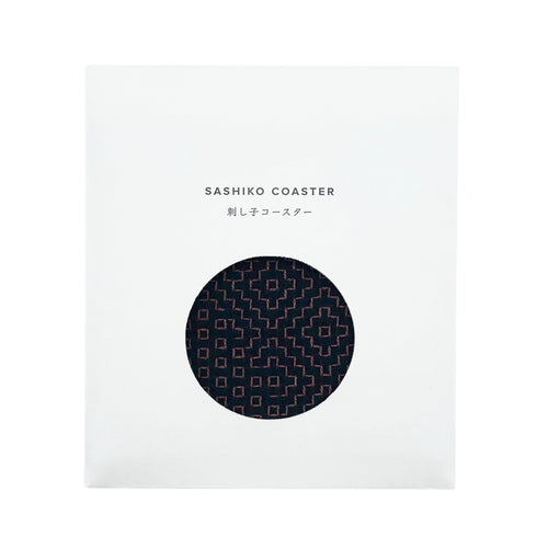 This coaster is made using Sashiko — a traditional Japanese craft in which a fine, detailed thread is woven through the fabric to increase strength and warmth, resulting in beautiful geometric patterns.