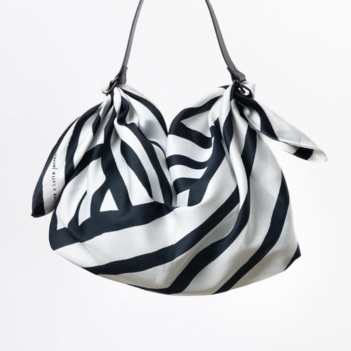 You can easily convert your furoshiki into a simple shoulder bag with one of our handmade straps — ideal for lightweight travels, or in those unexpected moments when you need an extra bag.